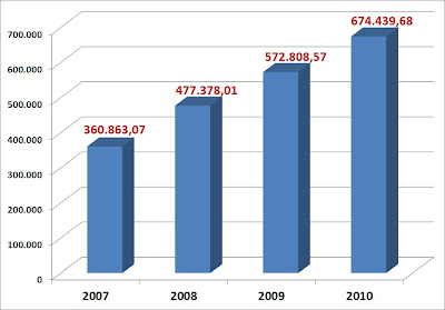 O gráfico demonstra os repasses médios mensais de Fundeb para o município de Baraúna-RN. De 2007 para 2010 houve um aumento nos recursos da ordem de 87%. A Lei de criação do Fundeb estabelece que a prefeitura deva usar, no mínimo, 60% desse valor para pagamento de professores. Os professores tiveram aumento de salário proporcional a esse aumento?