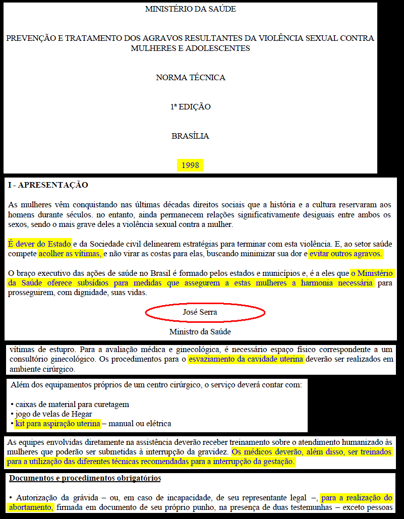 O único candidato a presidente nestas eleições que já assinou medidas para fazer abortos foi José Serra (PSDB), quando foi Ministro da Saúde, em 1998.